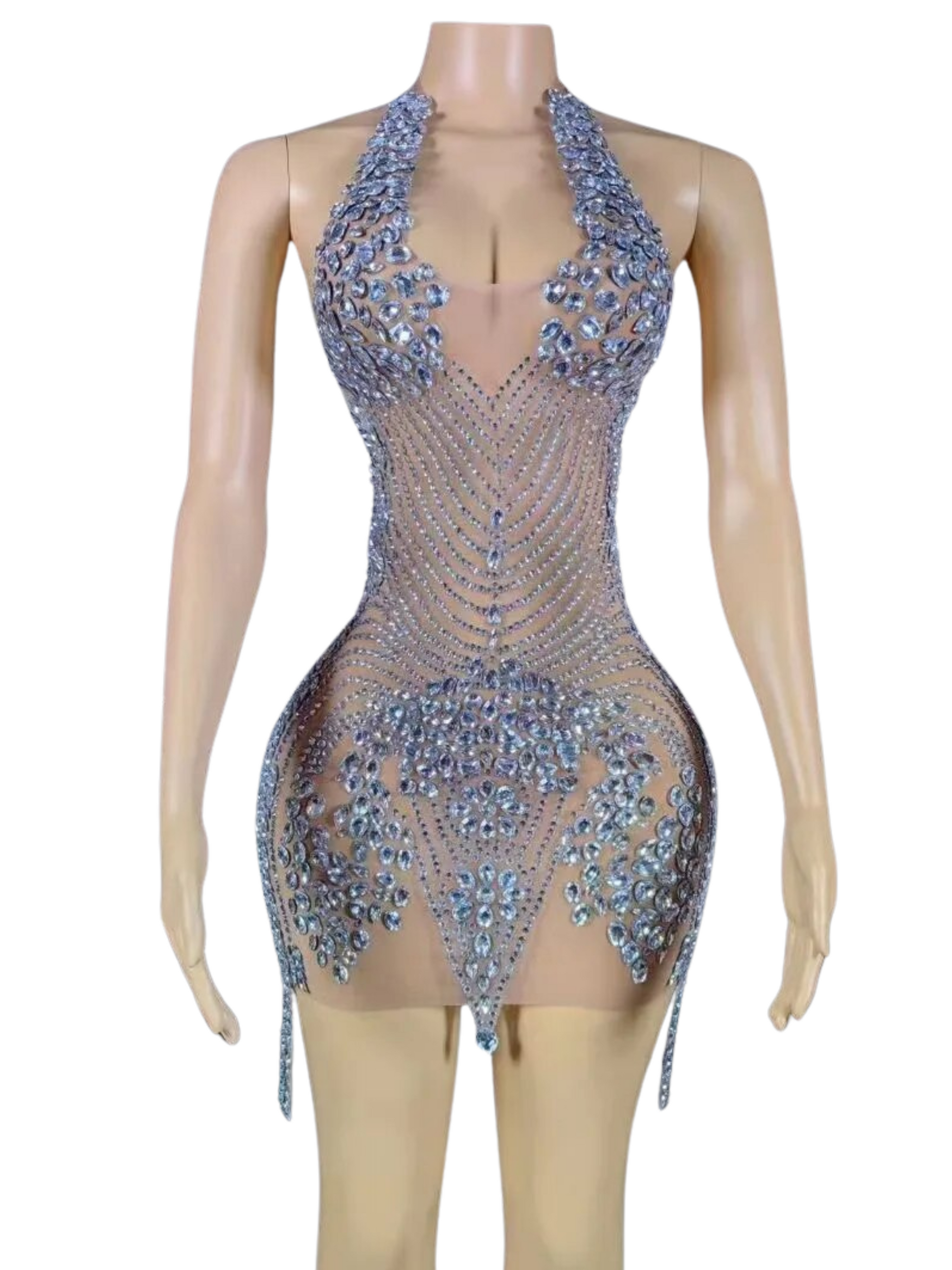 Halter Sheer Rhinestone Dress