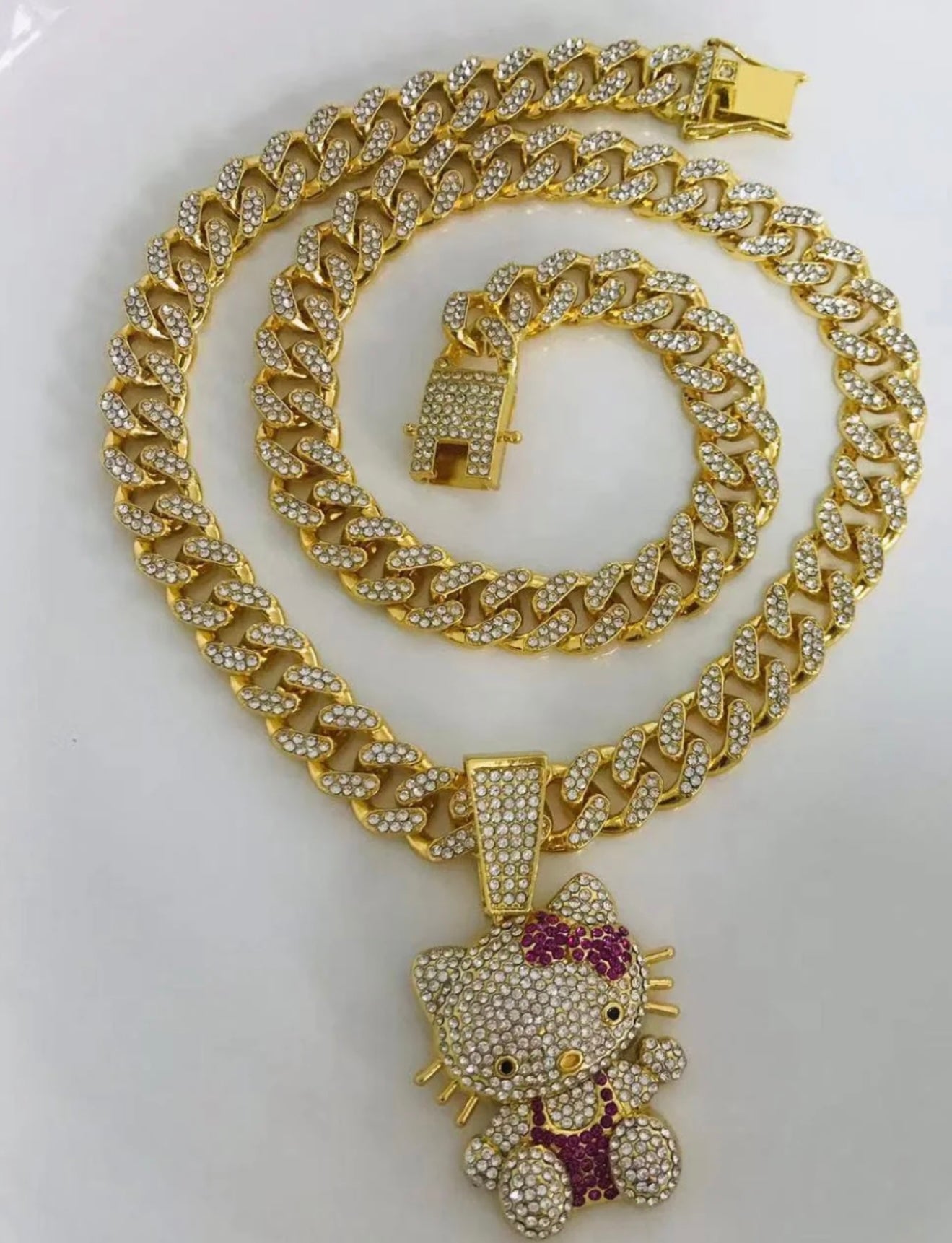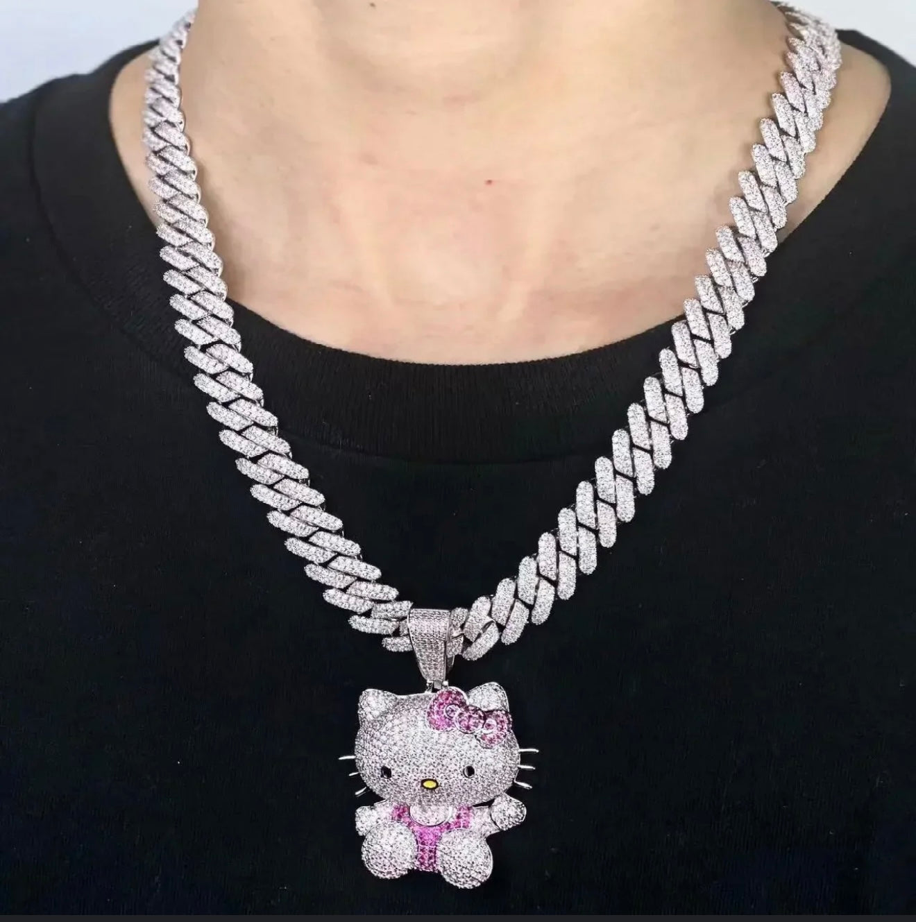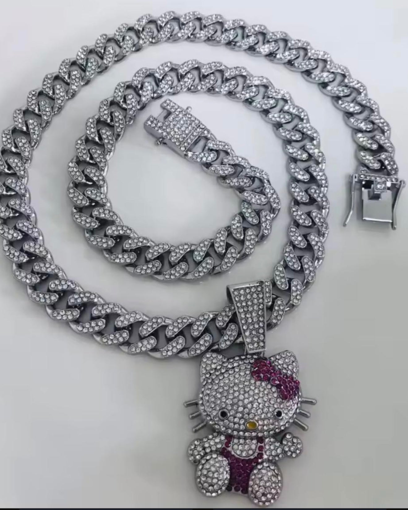 Shine in style with this playful yet luxe Hello Kitty chain, featuring a bold Cuban link design iced out with sparkling cubic zirconia. Available in silver and gold, this statement piece is tarnish-free and won’t change color—so you can keep the sparkle going every day. Perfect for adding a touch of glam and cuteness to any outfit! 💎